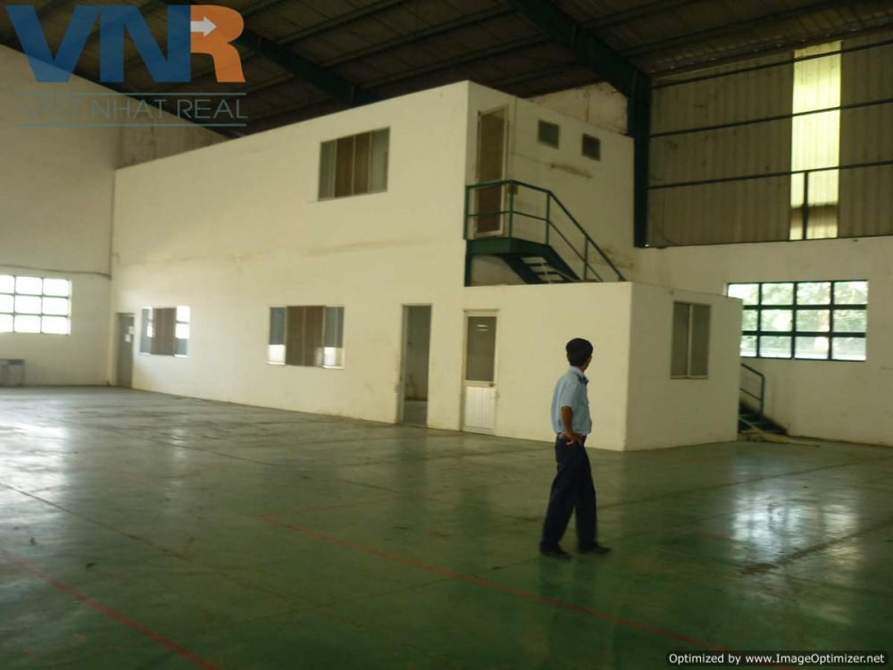Cần cho thuê nhà xưởng tại phường An Phú, Thuận An Bình Dương. tổng diện tích đất 8000m2 (40x200), diện tích xây dựng 4500m2 (29x155). nhà xưởng nằm mặt tiền đường lớn xe container ra vào thoải mái, có văn phòng trong xưởng có hệ thống lên container. nên đánh bóng Epoxy. thích hợp làm kho chứa hàng hoặc SX. giá thuê 2usd/m2.